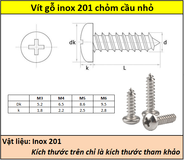 Vít gỗ inox chỏm cầu nhỏ-M3x6 |